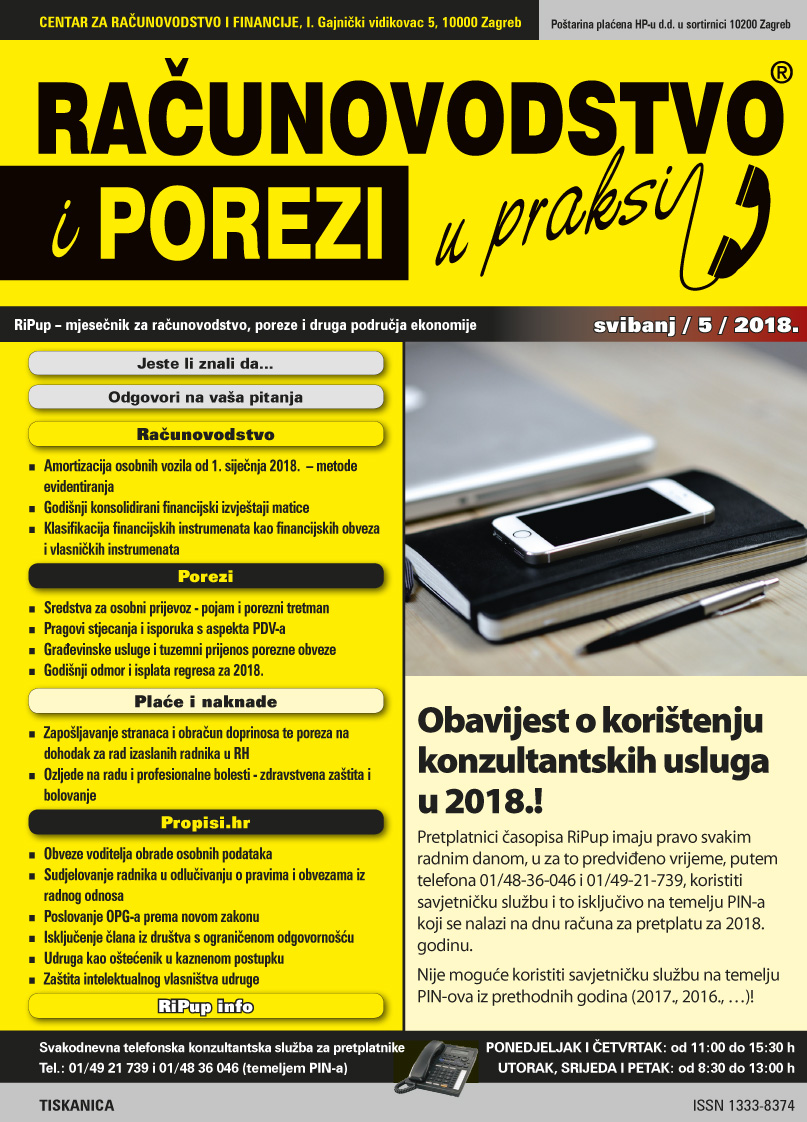 Časopis Računovodstvo i porezi u praksi 5/2018