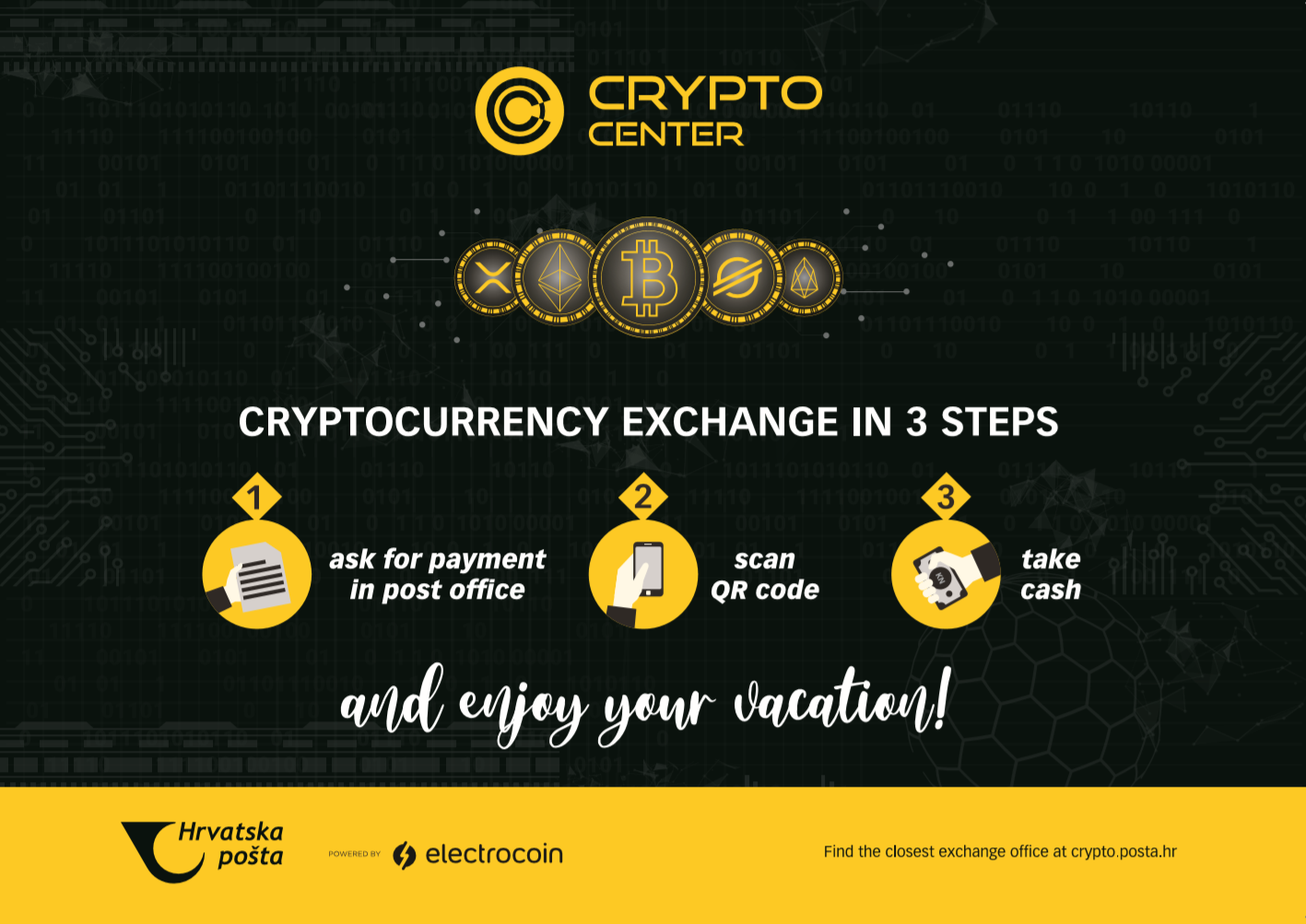 Od 9. prosinca svi domaći i strani korisnici moći će svoje kripto valute, u nekoliko jednostavnih koraka, promijeniti u kune. Nakon podnošenja zahtjeva skenira se QR kod te u poštanskom uredu dobivate gotovinu. Moguće je zamijeniti pet najčešće korištenih kriptovaluta (Bitcoin, Ethereum, Stellar, Ripple i EOS). Detaljne informacije o svim uslugama mogu se pronaći na crypto.posta.hr.