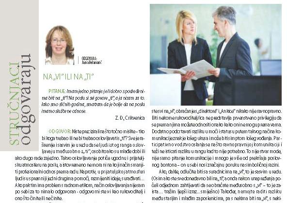 Veliki broj poslodavaca u dilemi je kako se obraćati zaposlenicima. U većem broju tvrtki na radnom mjestu je nekako uobičajeno da si svi govore „ti“. Međutim, da li je to korektan način komuniciranja unutar tvrtke.