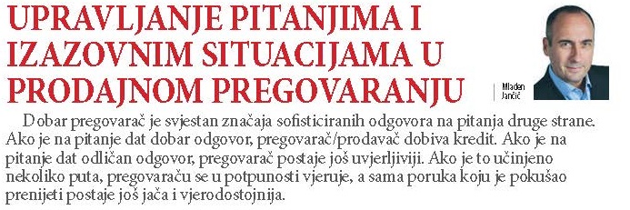 Upravljanje pitanjima i izazovnim situacijama u prodajnom pregovaranju