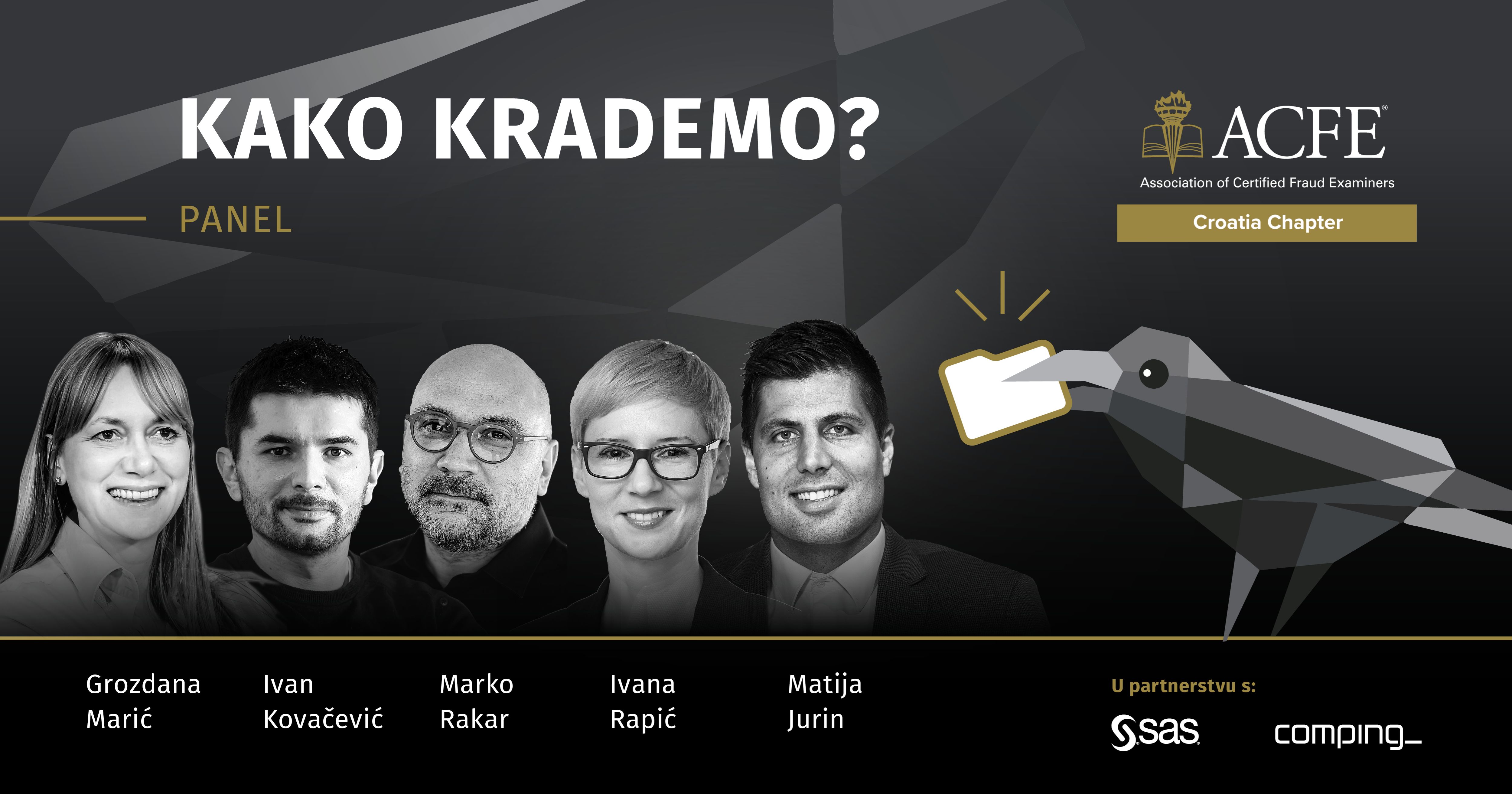 Compingov anti-fraud stručnjak Matija Jurin moderirao je panel u sklopu kojeg su financijski, forenzički i IT stručnjaci iznijeli stavove vezane uz rezultate istraživanja. Na panelu su uz Matiju sudjelovali Marko Rakar, IT stručnjak i tajnik ACFE-a, Ivan Kovačević, predsjednik ACFE-a, Ivana Rapić, potpredsjednica ACFE-a i Grozdana Marić, Head of CEMEA Fraud & Security Intelligence u SAS-u. Panelisti su se složili da su rezultati u određenim segmentima očekivani i slični globalnima, ali postoje i određene razlike koje će biti potrebno preispitati iz svih perspektiva kako bi pronašli uzrok i mjere prevencije.