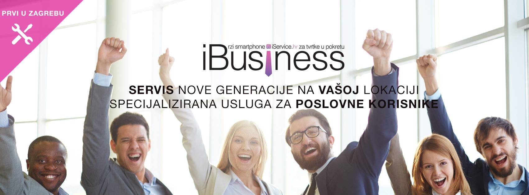iBusiness pruža rješenja za poduzeća koja trebaju profesionalno, povoljno i učinkovito popravljanje uređaja i podršku. Cilj ove usluge je ukloniti probleme i nedostatak vremena potrebnog za menadžment uređaja poduzeća kroz profesionalno i praktično djelovanje. Praktičnost ove usluge je otklanjanje kvara na pametnim telefonima i tabletima na licu mjesta od strane zaposlenika iServicea.