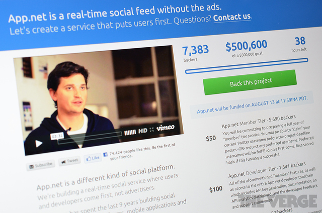 Za financiranje projekta Caldwell je skupio 800 tisuća dolara. U razgovoru za CNN rekao je kako su brojni problemi povezani s društvenim mrežama nastali upravo zbog financija jer kompanije žele zadovoljiti oglašivače, a ne milijune ljudi koji koriste njihove usluge. App.net je trenutno otvoren kao alfa verzija za one koji će financirati ovaj projekt te će do konačne verzije ove društvene mreže trebati uložiti još puno truda.
