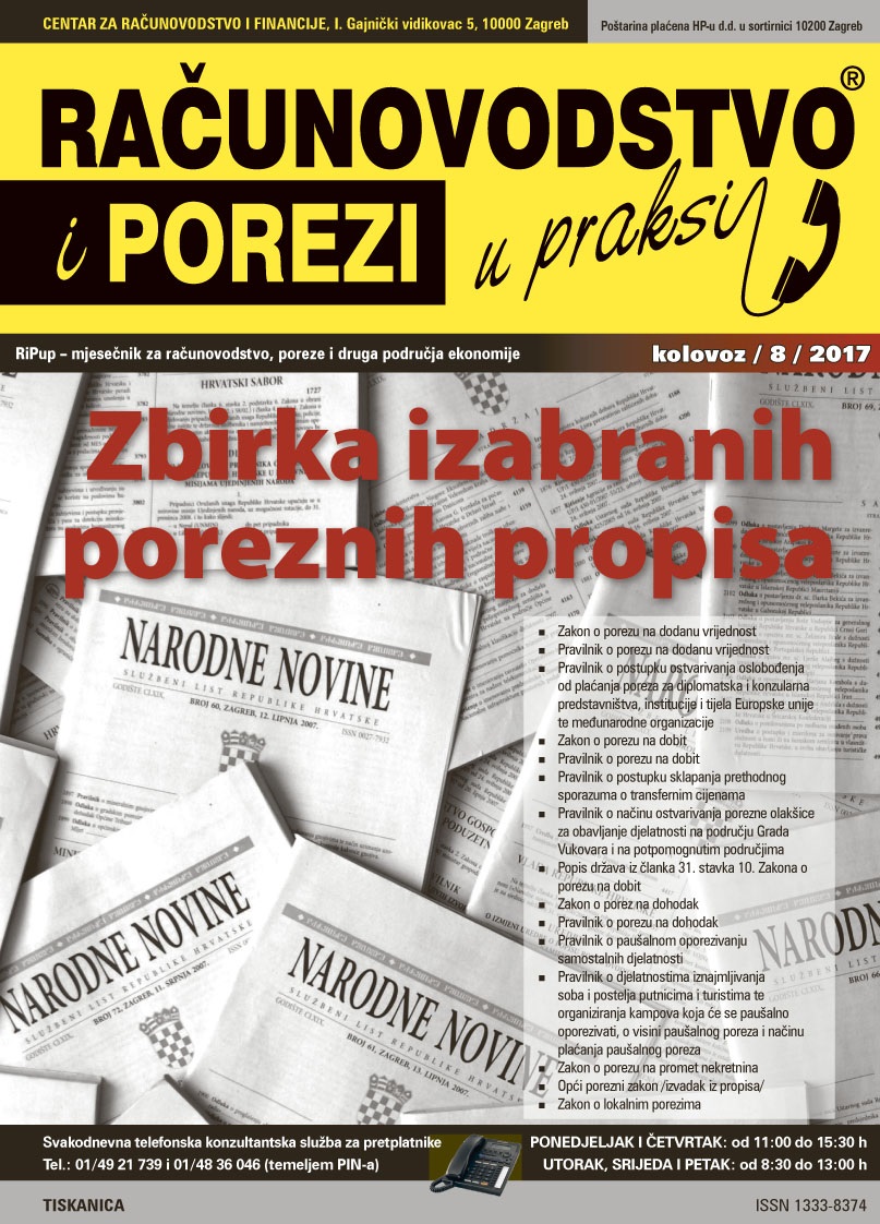 Novi broj časopisa Računovodstvo i porezi u praksi (kolovoz)