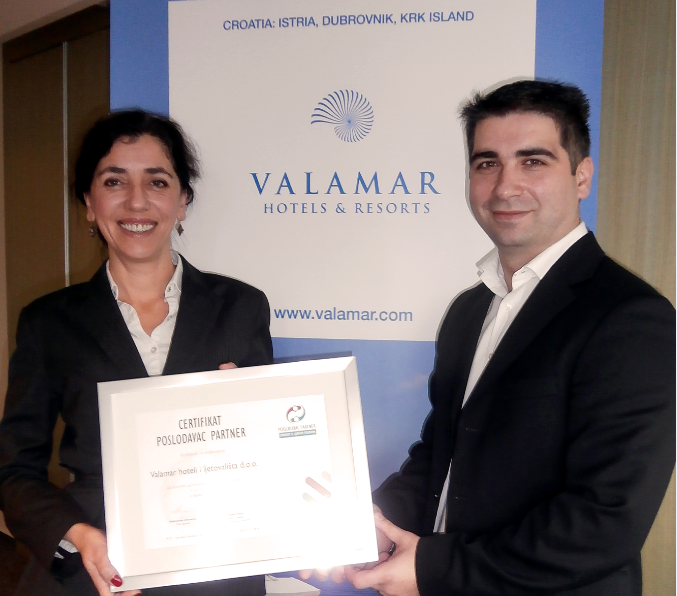 Na svečanoj dodjeli održanoj 6. prosinca 2013., Gordana Fabris, Direktorica ljudskih resursa u tvrtki Valamar hoteli i ljetovališta, primila je certifikat Poslodavac Partner za izvrsnost u upravljanju ljudskim resursima. Tom prilikom Gordana Fabris je izjavila: „Izuzetno smo ponosni što smo već osmu godinu za redom potvrdili status Poslodavca Partnera, koja se dodjeljuje za izvrsnost u upravljanju ljudskim resursima. Time smo se čvrsto smjestili u sam vrh kompanija koje se promišljenom strategijom razvoja ljudskih resursa i ulaganjem u svoje zaposlenika razlikuju od konkurencije. Trud i sredstva uložena u vlastite zaposlenike uvijek se višestruko vraćaju. Stvorite li okruženje u kojemu se ljudi osjećaju dobro i u kojemu vide svoju budućnost, imat ćete i zaposlenike s kojima možete računati u svim izazovima.“