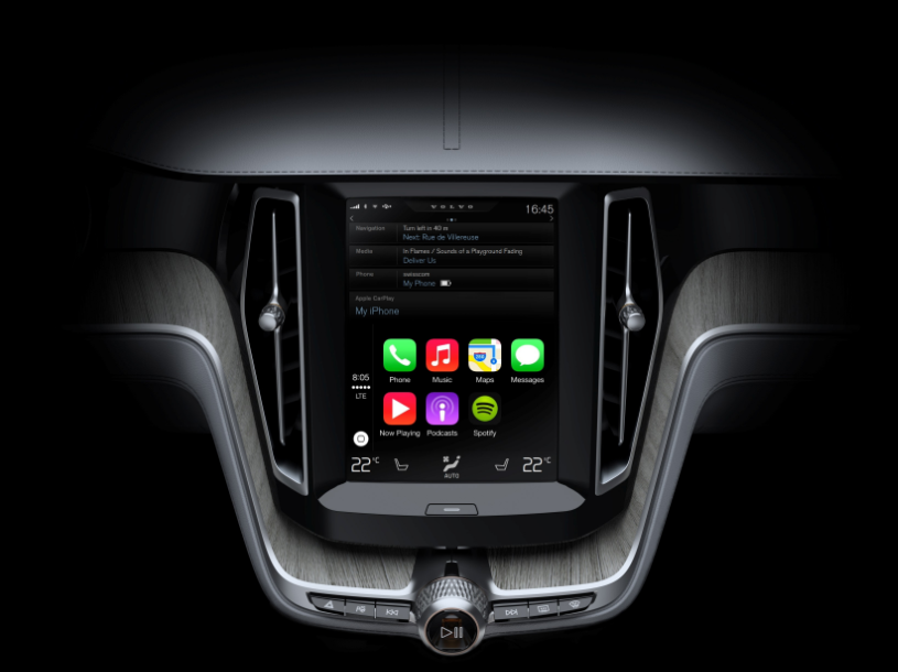 Volvo Cars time unapređuje mogućnosti Appleove tehnologije spajajući je na posebno razvijeno sučelje, koje omogućava vozačima upotrebu glasovnog navođenja ili korištenje komandi na upravljaču automobila, kako bi vozači imali pristup Appleovim funkcijama i uslugama uz puno osiguranje interaktivne funkcionalnosti na jednostavan i siguran način.