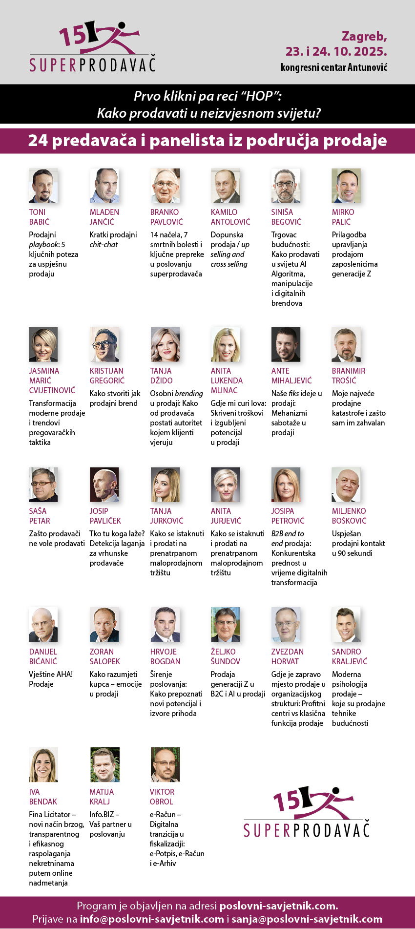 POPUNJENO! Jubilarna petnaesta prodajna konferencija Superprodavač! 30 predavača i panelista: Prvo klikni pa reci "HOP"-kako prodavati u neizvjesnom svijetu, Zagreb, 23. i 24.10.2025.