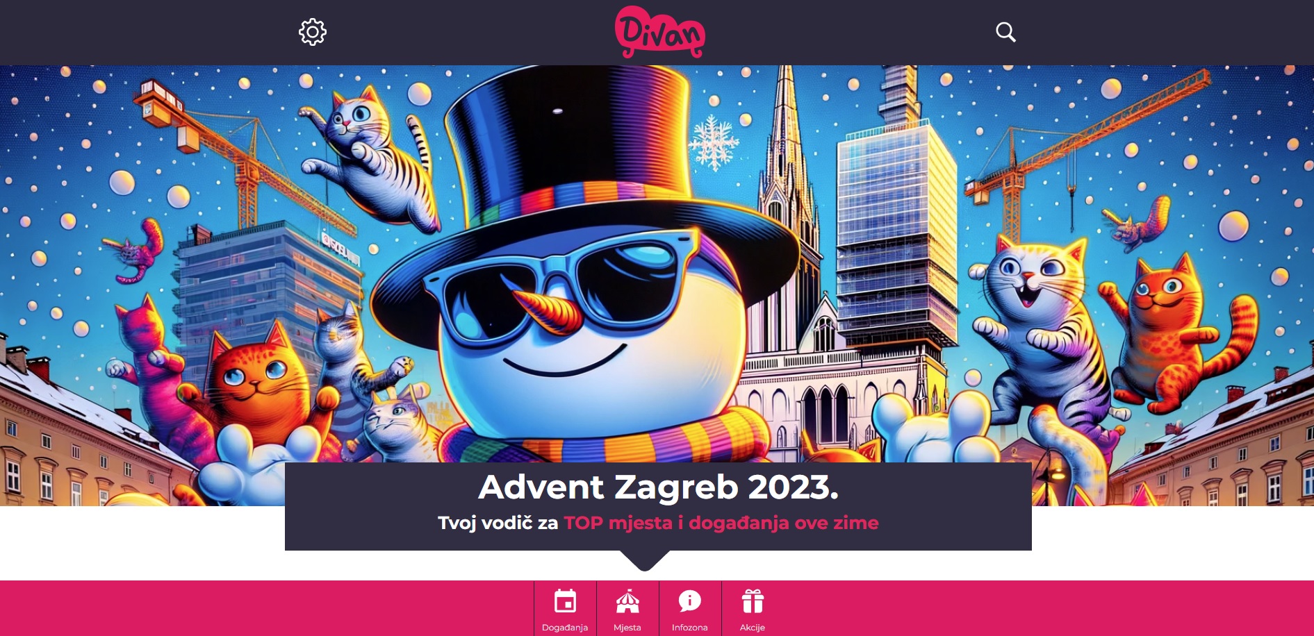 Uz krilaticu „Bolje da padaju mačke nego fasade“ iz zagrebačkog startupa Divan.hr predstavili su najnovije izdanje adventskog vodiča. Ova platforma ponikla iz Zagrebačkog inovacijskog centra (ZICER) već godinama prati društvena događanja u Zagrebu i okolici, ali najistaknutiji su upravo njihovi adventski vodiči. Ove godine im u njegovom stvaranju pomažu alati umjetne inteligencije.