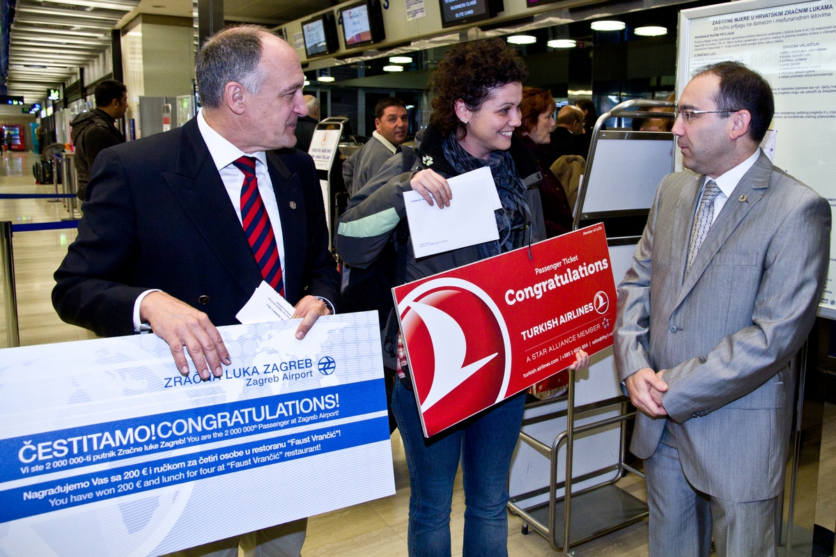 Dvomilijunti putnik Zračne luke Zagreb ove godine prijavljen je na šalter za registraciju putnika i to na letu Turkish Airlines za Istambul, čak 48 dana ranije nego 2010. godine te gotovo mjesec dana prije nego rekordne 2008. godine kada je dvomilijunti putnik zabilježen 24. studenog.