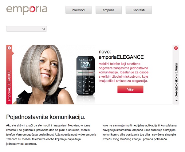 Tvrtka emporia Telecom, vodeći austrijski proizvođač mobilnih telefona za starije osobe, lansirala je novu web stranicu na hrvatskom jeziku namijenjenu postojećim i budućim korisnicima svojih proizvoda. Na adresi http://www.emporia.eu/hr/home/ korisnici od sada mogu pronaći još više informacija o proizvodima u ponudi emporia Telecoma kao i čitav niz korisnih informacija o aktualnim promotivnim akcijama, standardima kvalitete, globalnim inicijativama i povijesti tvrtke.