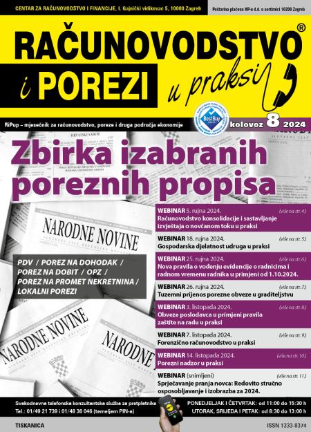 Novi broj RiPup-a kolovoz uskoro kod pretplatnika. Hvala na 22 godine čitanja! U ovom broju, Zbirka izabranih poreznih propisa na čak 220 stranica, programe desetak RiPup stručnih edukacija, te poklon pretplatnicima DVD od 2003-2023.