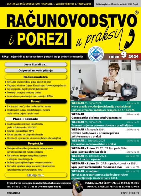 Novi broj RiPup-a rujan uskoro kod pretplatnika. Hvala na 22 godine čitanja! U ovom broju, porezni i pravni autorski tim RiPupa donosi velik broj tekstova na čak 172 stranice, programe desetak RiPup stručnih edukacija, te poklon pretplatnicima DVD od 2003-2023.