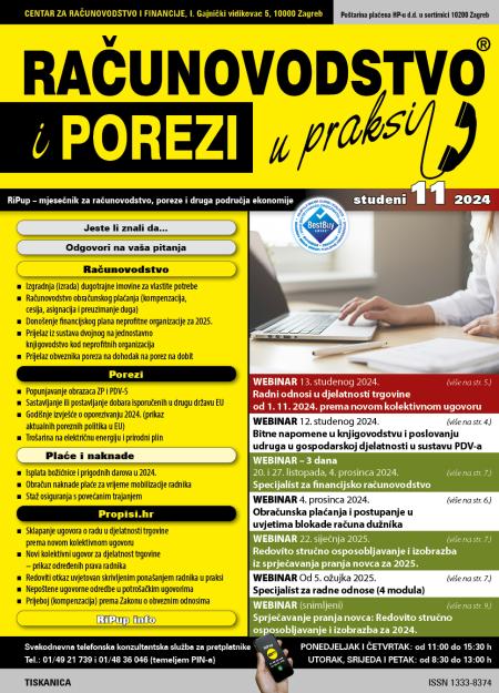 Novi broj RiPup-a studeni uskoro kod pretplatnika. Hvala na 23 godine čitanja! U ovom broju, porezni i pravni autorski tim RiPupa donosi velik broj tekstova na čak 192 stranice, programe desetak RiPup stručnih edukacija, te poklon pretplatnicima DVD od 2003-2023.