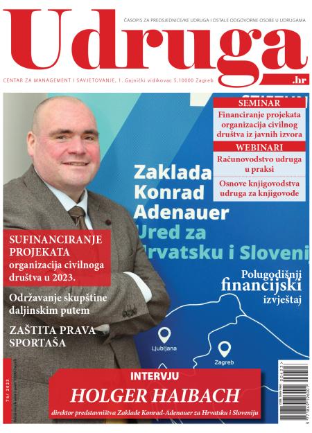 U ovom broju novinarski i autorski tim pripremio je aktualne tekstove iz područja poslovanja udruga, za vas organiziramo i nekoliko stručnih edukacija. Na naslovnici novog broja, Holger Haibach, direktor predstavništva Zaklade Konrad-Adenauer za Hrvatsku i Sloveniju: "Država mora Hrvatsku učiniti što privlačnijom za svoje građane, inače će je oni napustiti, a zemlja će se nepovratno promijeniti".