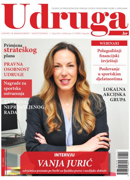 U ovom broju novinarski i autorski tim pripremio je aktualne tekstove iz područja poslovanja udruga, za vas organiziramo i nekoliko stručnih edukacija. Na naslovnici novog broja, Vanja Jurić, odvjetnica poznata po borbi za ljudska prava i medijske slobode: „Suci, kao i sve druge osobe koje obavljaju javni posao, moraju biti svjesni da njihov javni rad podliježe preispitivanju i kritici javnosti i medija“