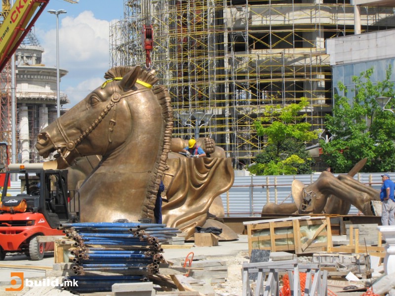 Veliki dijelovi skulpture stigli su u Skopje iz Firenze u ograđenu zonu u središtu glavnog grada Makedonije, a vlasti su najavile da će kompletno sastavljanje spomenika koji će dosegnuti visinu od 22 metra, potrajati 15 dana.