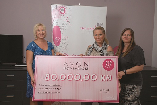 Globalnu proslavu 125. rođendana tvrtka Avon Hrvatska obilježila je službenim uručenjem čeka vrijednosti 80.000 kuna Udruzi žena oboljelih od raka, njihovih obitelji i prijatelja SVE za NJU!. Najveći dio doniranih sredstava prikupljen je prodajom Avonovih proizvoda iz linije Breast Cancer Crusade, dok je dio prikupljen u humanitarnoj akciji AVON Šetnja za život koja se, u organizaciji Udruge SVE za NJU! i Avona Hrvatska, prvi put ove godine održala u Hrvatskoj.