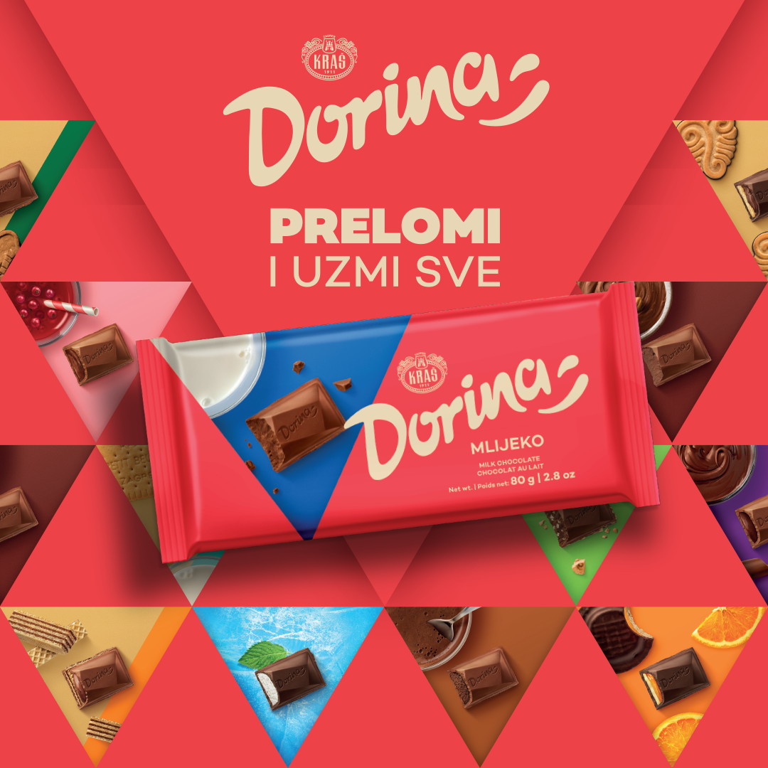 Jedan od naših najprepoznatljivijih brendova, čokolade Dorina, odjenuli smo u novo ruho. Od sada Dorine imaju moderno razigrano pakiranje, a osim estetike dizajna naglasak smo stavili i na kvalitetu ambalaže pa će potrošači imati cjeloviti i još bolji doživljaj uživanja u mnoštvu zanimljivih okusa koje Dorina nudi. U Krašu se trudimo da sve promjene koje se tiču naših proizvoda zaista budu na zadovoljstvo potrošača, stoga vjerujemo da će redizajnirana Dorina oduševiti sve ljubitelje ove čokolade, rekla je Marina Knežević, direktorica marketinga Kraša.