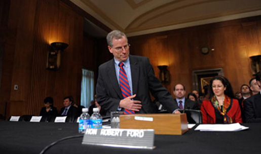 Sirijsko ministarstvo vanjskih poslova pozvalo je u nedjelju američkog i francuskog veleposlanika u Damasku, Roberta Forda i Erica Chevalliera, prosvjedujući protiv njihova "nedopuštenog" posjeta pobunjeničkom gradu Hami, objavila je službena agencija Sana.