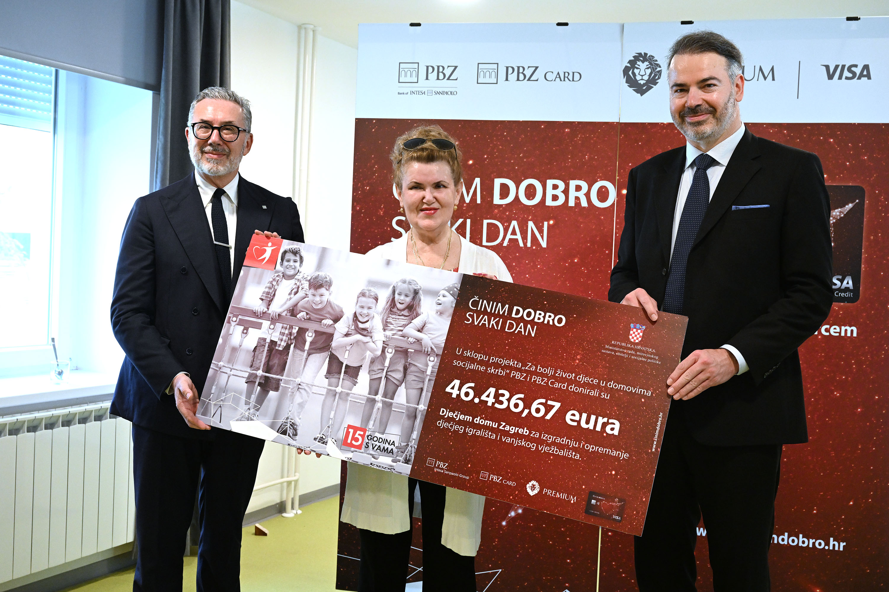 Raduje nas svaka prilika da pomognemo djeci i mladima te nam je drago da smo u sklopu našeg humanitarnog projekta „Činim dobro svaki dan“ i Visa kartice sa srcem pomogli i Dječjem domu Zagreb – Podružnici A. G. Matoš, uručivši mu danas donaciju od oko 46,5 tisuća eura. Nadamo se da će novo dječje igralište i vanjsko vježbalište, čiju izgradnju i opremanje je omogućila ova donacija, uljepšati svakodnevne trenutke, igru i odrastanje te poboljšati kvalitetu života korisnika Dječjeg doma. Našu trajnu opredijeljenost i posvećenost pomaganju zajednici možda najbolje potvrđuje naš projekt „Činim dobro svaki dan“ i humanitarna Visa kartica sa srcem koji ove godine navršavaju petnaest godina kontinuiranog pomaganja najosjetljivijoj skupini našeg društva – djeci i mladima. Za dobrobit djece i mladih samo u sklopu ovoga projekta do sada smo donirali više od 4,2 milijuna eura te realizirali 70 donacija pedijatrijskim odjelima i dječjim domovima diljem Hrvatske, istaknuo je Dinko Lucić, predsjednik Uprave Privredne banke Zagreb.