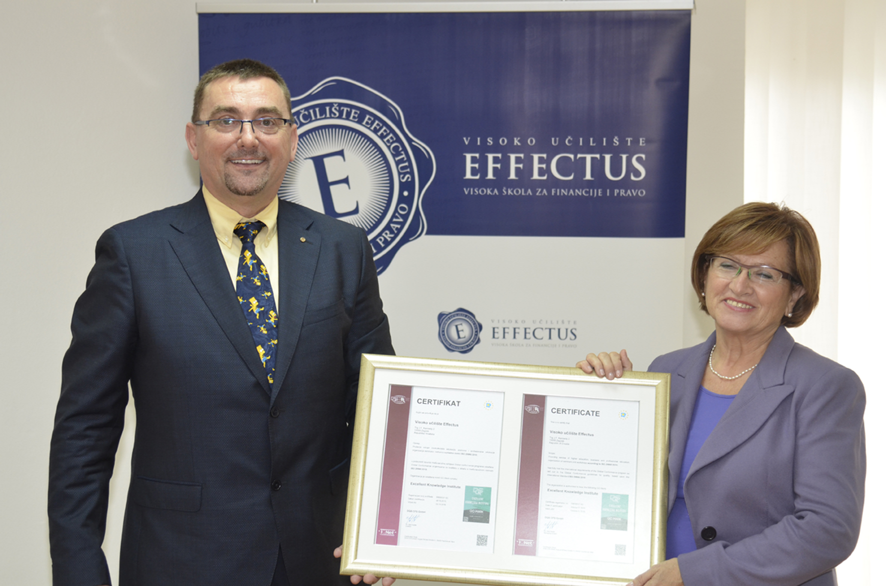 Effectus – visoka škola za financije i pravo, prva je visokoobrazovna ustanova u Hrvatskoj i u regiji, a ujedno i 20. u Europi, kojoj je ovih dana svečano uručen certifikat ISO 29990:2010, čime je još jednom potvrđena kvaliteta i izvrsnost Effectusa. Dobivanjem certifikata Effectus se svrstao na sam vrh obrazovnih institucija koje su uskladile svoje poslovanje sukladno ovoj normi, i to ne samo u Hrvatskoj i regiji, već i u Europi.