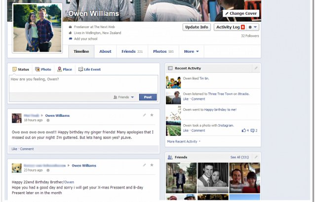 Najveća društvena mreža počela je korisnicima sa Novog Zelanda izbacivati nove Timeline profile koji naglasak stavljaju na komunikaciju između prijatelja.
