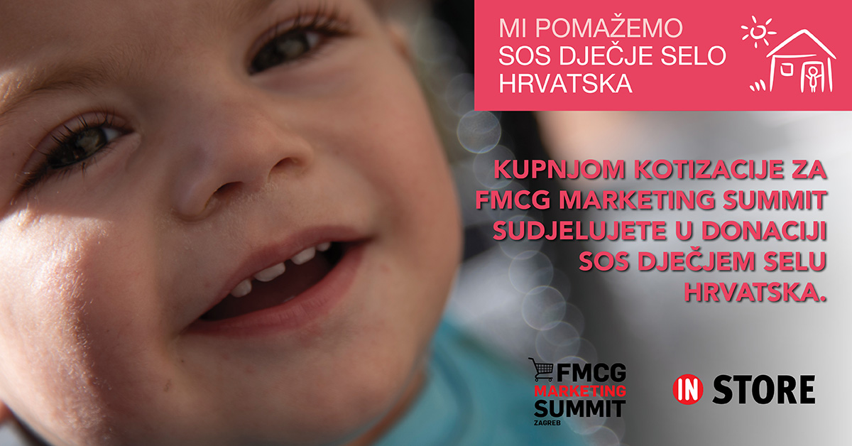 Kupnjom kotizacije za FMCG Marketing Summit sudjelujete u donaciji SOS Dječjem selu Hrvatska koje već 27 godina radi s misijom stvaranja brižnog doma za svako dijete bez odgovarajuće roditeljske skrbi.
