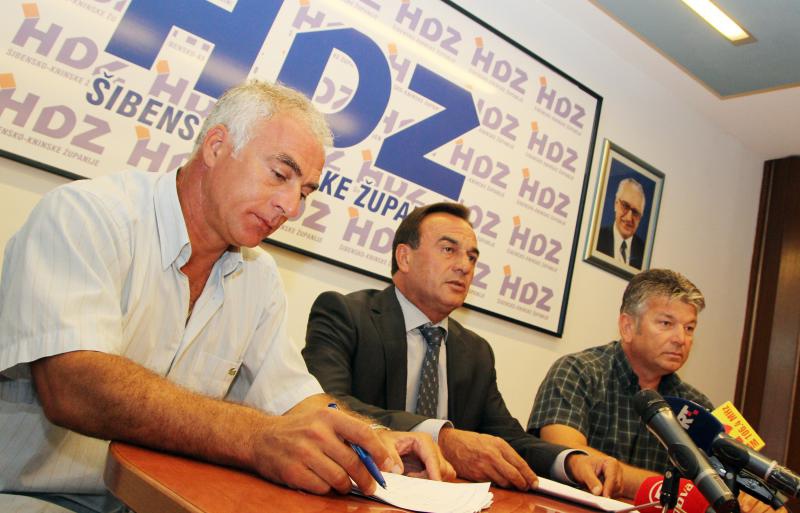 Foto: Ante Kulušić, predsjednik ŽO HDZ-a Šibensko-kninske županije, dopredsjednik ŽO HDZ-a Goran Pauk, tajnik ŽO HDZ-a Novica Ljubičić (Dusko Jaramaz/PIXSELL)