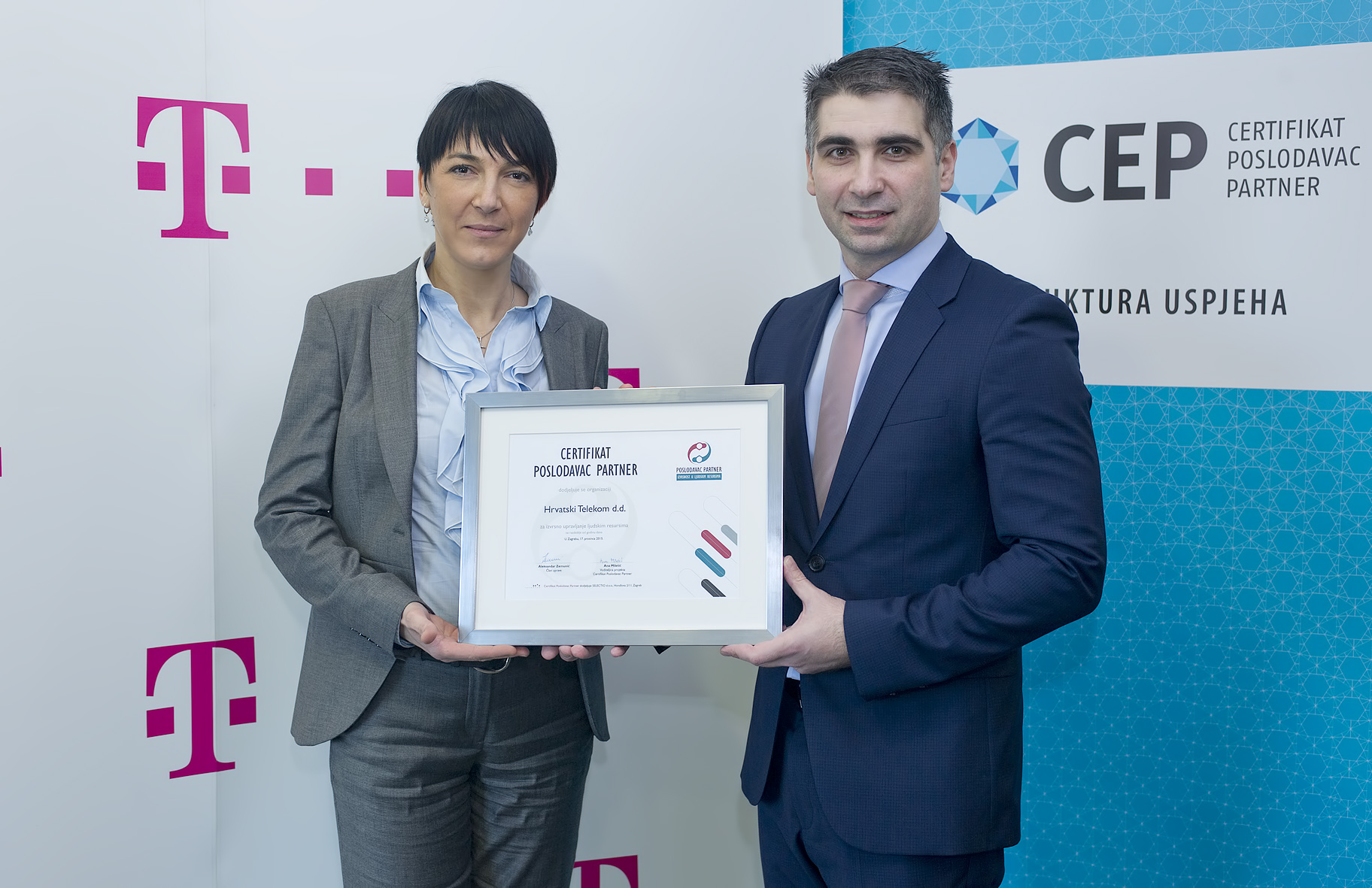Hrvatski Telekom je treću godinu zaredom primio prestižno priznanje certifikat Poslodavac Partner za izvrsnost u upravljanju ljudskim resursima te potvrdio svoje mjesto među kompanijama s najboljom praksom u području razvoja, praćenja, motiviranja i nagrađivanja svojih zaposlenika.