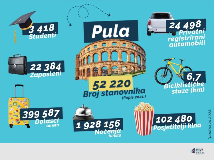 Sve počinje 5. svibnja, kada Dan grada slavi Pula. Grad s više od 52 tisuće stanovnika itekako vole i turisti pa kad se pogledaju ukupni godišnji podaci turizma, može se vidjeti da pulskim ulicama svake godine prođe višestruko više osoba. Je li Puljanima draže pješačenje ili pak vožnja, nismo sigurni, no zanimljivo je da, statistički gledano, na gotovo svaka dva stanovnika dolazi jedan registrirani privatni automobil.