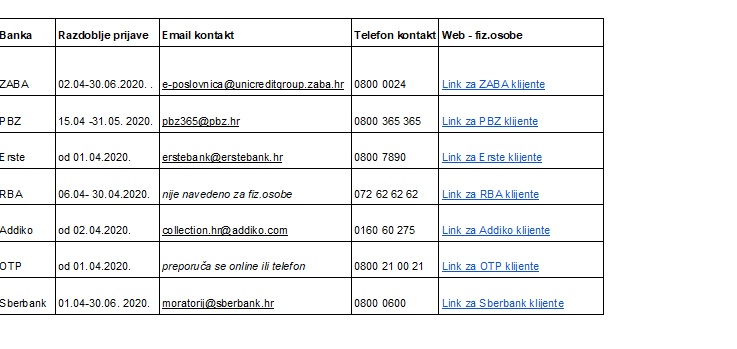 Svaka banka definirala je različite kanale kako se pravna ili fizička osoba mogu prijaviti za moratorij.