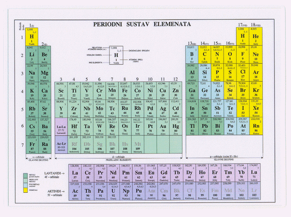 Periodni sustav elemenata prikazuje sve poznate kemijske elemente od kojih svaki ima svoj broj.
