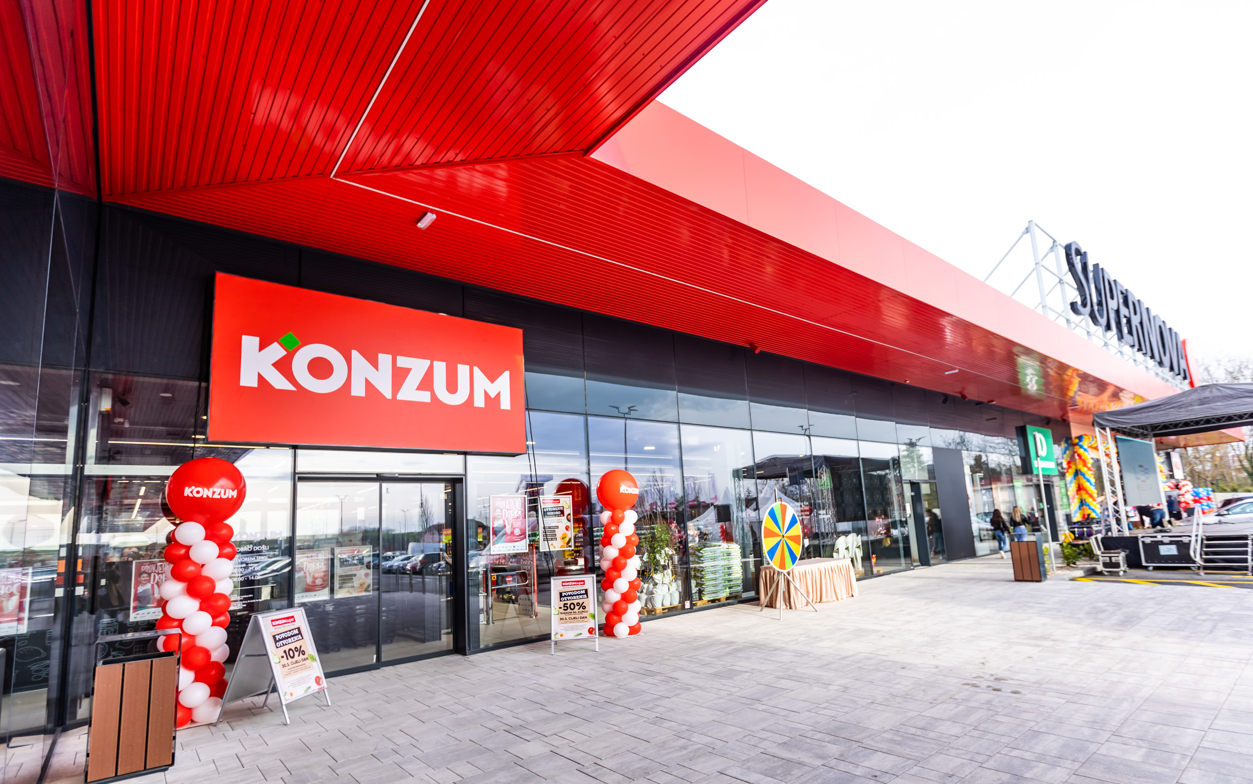 Konzum je danas proširio svoju maloprodajnu mrežu u kojoj se nalazi više od 600 prodavaonica otvorenjem novog Super Konzuma u Križevcima na adresi Ulica kralja Tomislava 56a. Super Konzum se nalazi u sklopu trgovačkog centra Supernova te se prostire na ukupnoj površini od 1.772 četvornih metara.