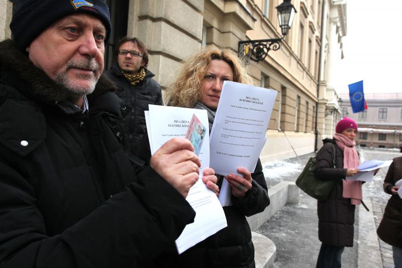 Nakon najave potpredsjednika Vlade Radimira Čačića da Vjesnik odlazi u stečaj, Vjesnikovi novinari su na Markovom trgu dijelili letke saborskim zastupnicima, piše bankmagazine.hr.