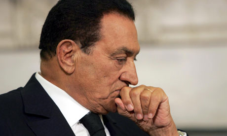 Zrakoplov je sletio blizu suda i televizija je nedugo nakon toga prikazala Mubaraka (83) odjevenog u plavi pulover kako na kolicima ulazi u sudnicu. Izgledao je mirno i ozbiljno te je razmijenio nekoliko riječi sa svojim sinovima Alom i Gamalom kojima se također sudi.