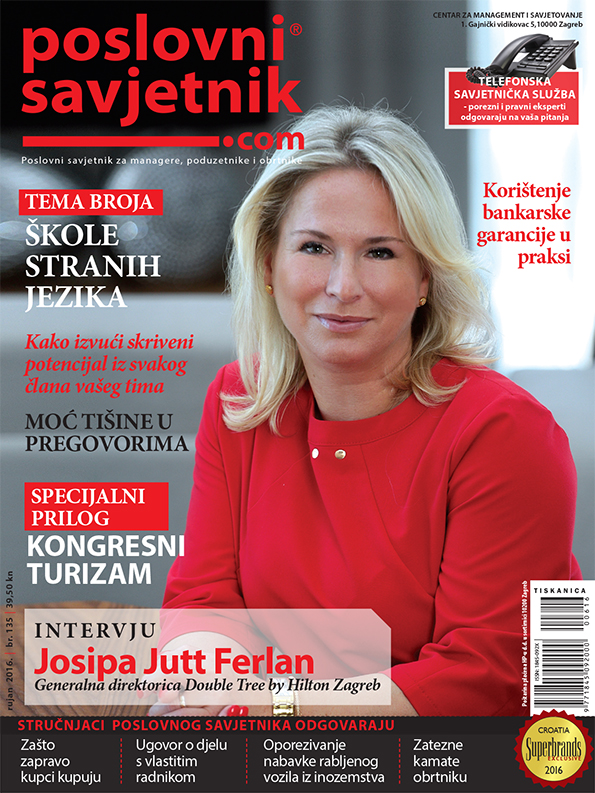 Na naslovnici predstavljamo Josipu Jutt Ferlan, generalnu direktoricu Double Tree by Hliton Zagreb.
