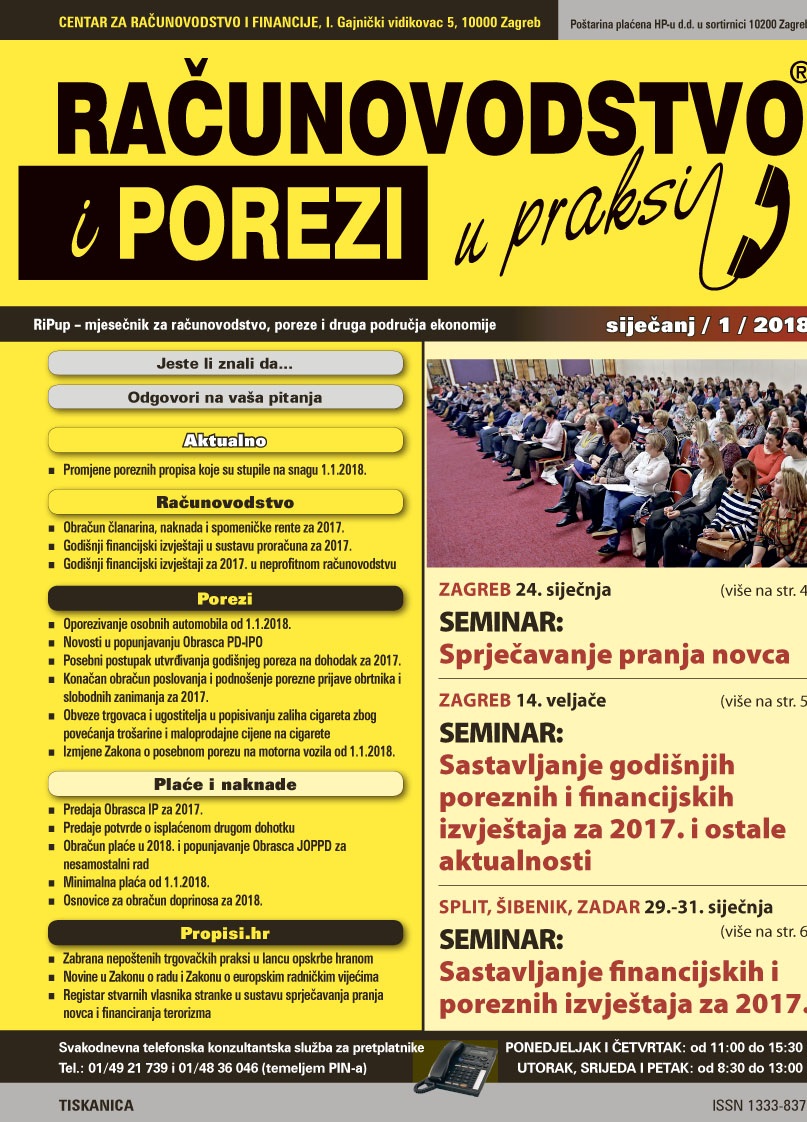 Novi broj časopisa "RAČUNOVODSTVO I POREZI U PRAKSI" 1/2018