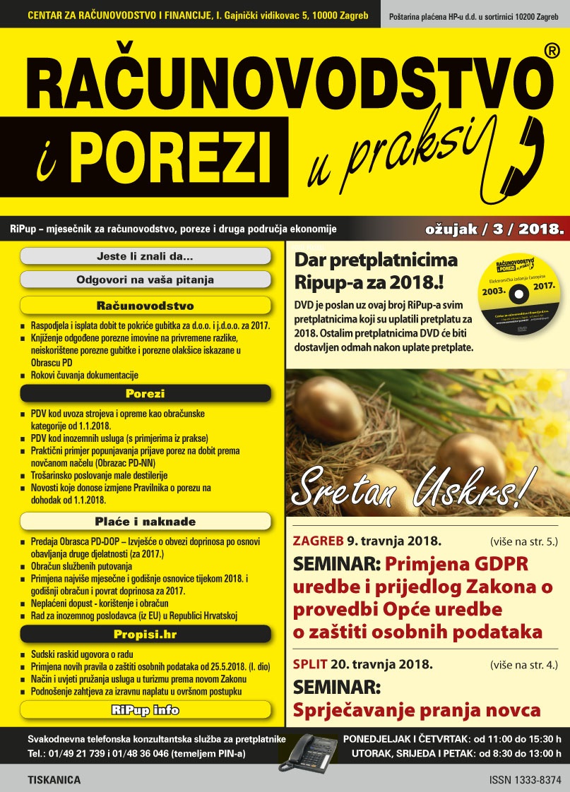 Novi broj časopisa Računovodstvo i porezi u praksi 3/2018