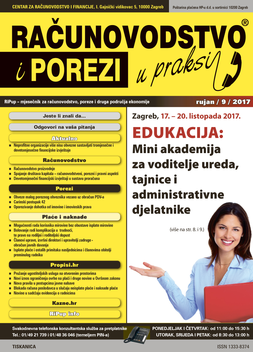 Novi broj časopisa Računovodstvo i porezi u praksi (rujan)