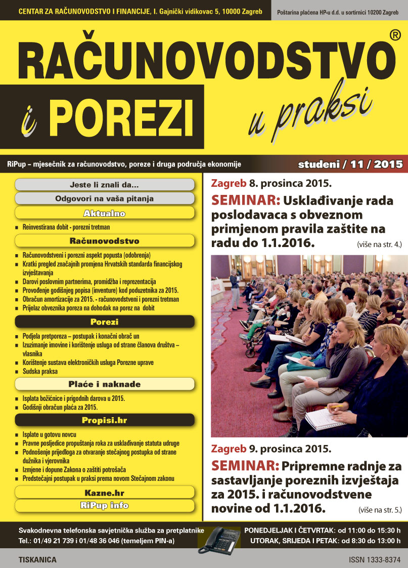 - 9. prosinca 2015. - Pripremne radnje za sastavljanje poreznih izvještaja za 2015. i računovodtsvene novine od 1.01. 2015.