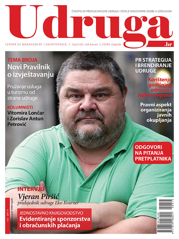 Novi broj poslovnog časopisa Udruga.hr je u tisku, a kod pretplatnika će biti kroz desetak dana. Časopis je prvenstveno namijenjen predsjednicima udruga i ostalim odgovornim osobama u udrugama pa im i u ovome broju donosimo mnoštvo zanimljivih tekstova s korisnim informacijama koje će im svakako pomoći u radu.