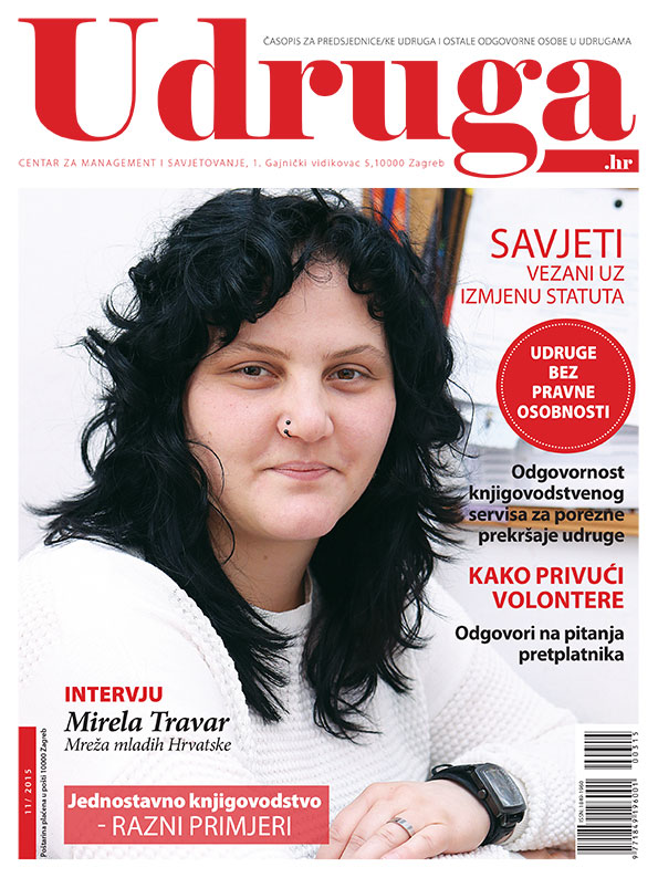 Novi broj poslovnog časopisa Udruga.hr je u tisku, a kod pretplatnika će biti početkom sljedećeg tjedna. Časopis je prvenstveno namijenjen predsjednicima udruga i ostalim odgovornim osobama u udrugama pa im i u ovome broju donosimo mnoštvo zanimljivih tekstova s korisnim informacijama koje će im svakako pomoći u radu.