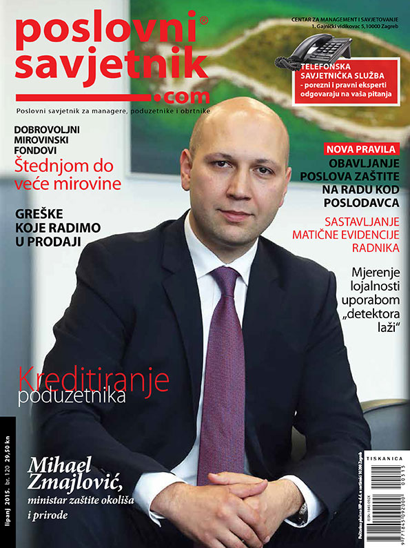 Tema broja je Dobrovoljno mirovinsko osiguranje, a jedan od priloga Kreditno poslovanje poduzetnika. O aktualnim projektima energetske učinkovitosti, zaštite okoliša i prirode, razgovarali smo s ministrom Mihaelom Zmajlovićem. Često se u javnosti smatra da je zaštita okoliša luksuz koji si mogu priuštiti bogate zemlje, da je samo dodatni namet na gospodarstvo, no aktualnim projektima energetske učinkovitosti, zaštite okoliša i prirode, pokazuje se kako zaštita okoliša i razvoj mogu ići ruku pod ruku.