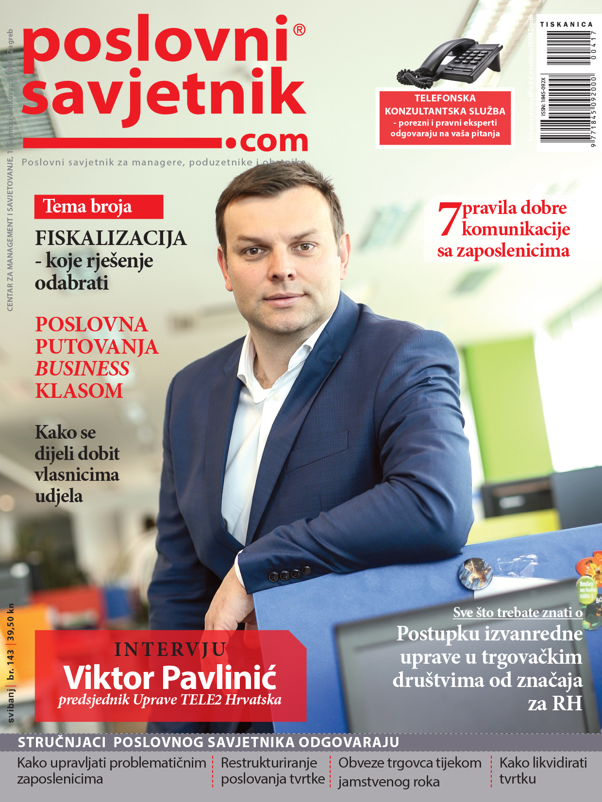 Teme broja su Fiskalizacija - koje rješenje odabrati i Poslovna putovanja business klasom, a razgovarli smo s Viktorom Pavlinićem, predsjetnikom Uprave Tele2 povodom lansiranja flat interneta za mobilne uređaje čime su uzburkali hrvatsko telekomunikacijsko tržište i time postali jedinstveni na našem tržištu.