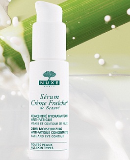 Serum Crème Fraîche® de Beaute 24-satni hidratantni serum protiv umorne kože dubinski hrani kožu od jutra do mraka. Kombinacija 8 biljnih mlijeka (bob, žuti grašak, zeleni čaj, kokos, badem, cvijet bagrema, soja i zob) štiti kožu od isušivanja, hrane je i osiguravaju neprekidnu hidrataciju dok 4 eterična ulja (neroli, citrus, ulje iglica bora, ulje bijele naranče) djeluju antistresno, vraćajući energiju umornoj koži.