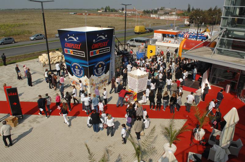 Osječki Cineplexx i Avenue Mall oborili su Guinnessov rekord izradivši najveću kutiju za kokice na svijetu, u koju je stalo oko 2,8 tona kokica.