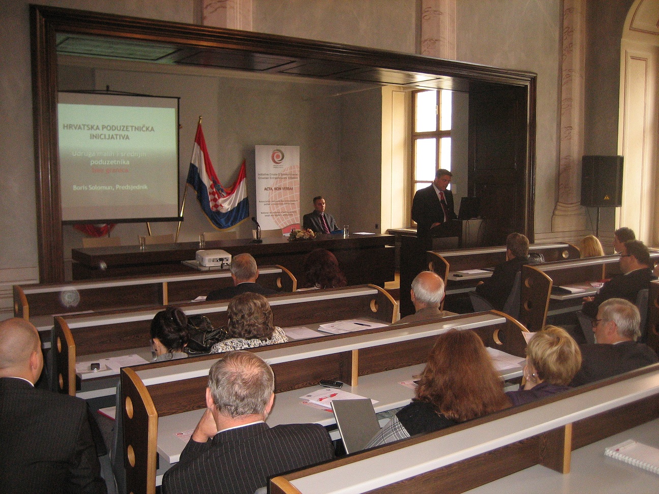 Umjesto profesorice Marine Dabić ispred katedre za međunarodnu ekonomiju Ekonomskog fakulteta predavanje o fondovima EU te poticajima održao je gospodin Davor Vlajčić dipl. oec; a gospođa Ilda Stanojević stručna suradnica Hrvatskog saveza zadruga predstavila je stogodišnje zadrugarstvo u Hrvatskoj te naglasila značaj zadrugarstva u modernom poduzetništvu. Mađarsko - Hrvatsku trgovinsku komoru predstavila je njena predsjednica Eva Gatai, a na kraju konferencije obrtništvo u EU predstavio je Natko Vlahović savjetnik u HOK. Svi predavači partneri koji su se odazvali pozivu HPI u svojim izlaganjima složili su se u jednom kako je potreban više neko ikad zajednički i koordinirani rad za razvoj modernog poduzetništva i konačno za pomoć gospodarstvu kako bi pronašli pravi put za izlazak iz krize.