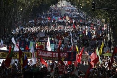 Zaposlenici javnog i privatnog sektora pristigli iz svih krajeva zemlje okupili su se po velikoj vrućini na poziv CGTP-a, glavne konfederacije sindikata, prosvjedujući protiv "osiromašenja i nepravde", što je bilo i geslo prosvjeda.