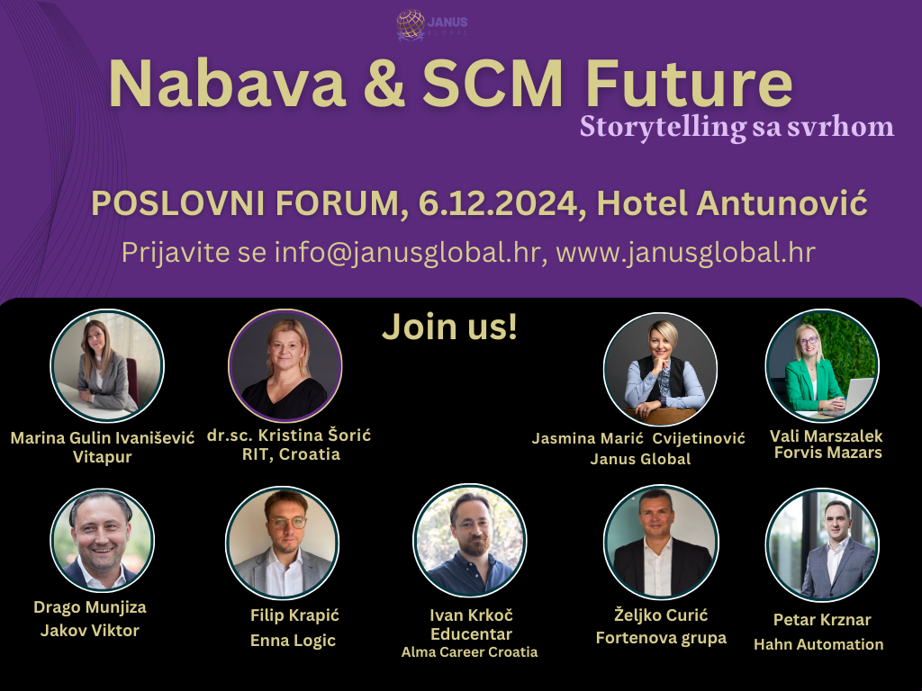 U organizaciji Janus Globala , 6.12.2024, Hotel Antunović, Zagrebačka avenija 100, Zagreb, okupiti će se stručnjaci iz svijeta poslovanja i podijeliti aktualne teme iz područja nabave, upravljanja kategorijama, opskrbnog lanca, ESG aktualnih direktiva.