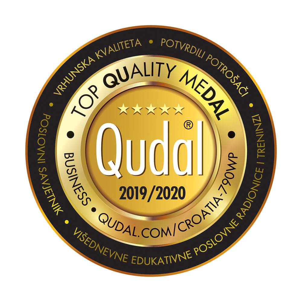 Najnovijim QUDAL – QUality meDAL Business istraživanjem većina od 1,200 ispitanika na području Republike Hrvatske odabrala je upravo Poslovni savjetnik kao broj 1 u kvaliteti u kategoriji višednevnih edukativnih poslovnih radionica i treninga za cjeloživotno obrazovanje i treninge poslovnih osoba s apsolutno najvišom razinom kvalitete.